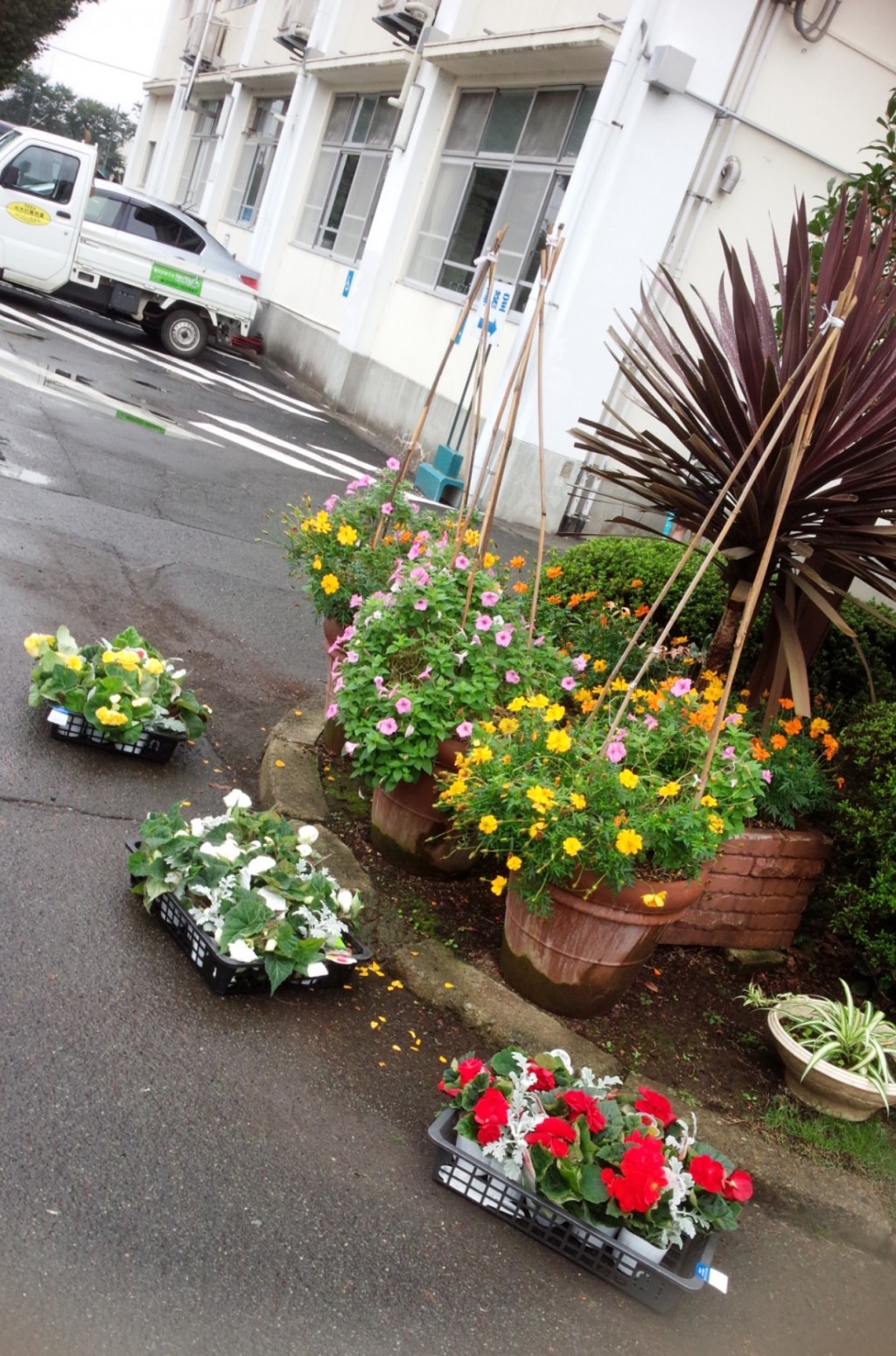 ご報告が遅くなってしまいましたが、先日10月1日(土)に県立秦野高校さんからお声をかけていただき、PTAの役員さん方と秋の花壇・プランターの植え替えを行いました~