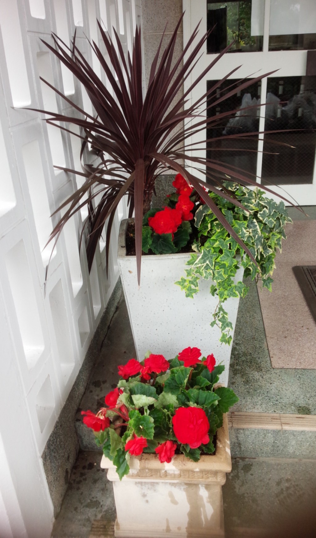 正面玄関では真っ赤なフォーチュンベゴニアがお出迎えしてくれますよ~
