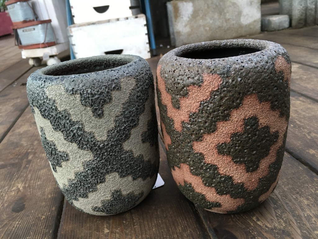 個性的な柄ですが、落ち着いた色でサボテンとも相性抜群☆