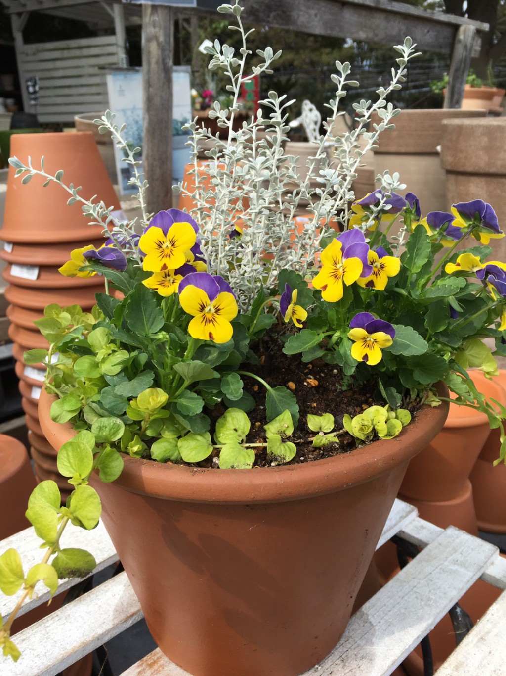 パンジー&ビオラ入荷中!(^^)! - 秦野市・平塚市・伊勢原市で観葉植物・多肉植物・ガーデニング雑貨・草花をお探しなら品揃え豊富な木村植物園におまかせ - 2016年10月23日 / 入荷情報:新着 鉢・スタンド 園芸資材 地域一番店(平塚市・秦野市・伊勢原市・大磯町・二宮町‥等)を目指している!資材担当まつとしです。 今日は暖かいですね♪ 秋のガーデニングにはピッタリ♪ いま、ガーデン倶楽部には人気のパンジー&ビオラが続々入荷しています♪。 そこでこんな寄せ植えいかが? シンプルなテラコッタの鉢がお花を引き立てます!(^^)! 軽くて丈夫なファーバーのデザインもgood お花と色を合わせた寄せ植え♪ ほっこりする♪秋寄せ植えをつくりませんか!? 鉢も秋の新作 続々入荷しています。 まつとしでした。