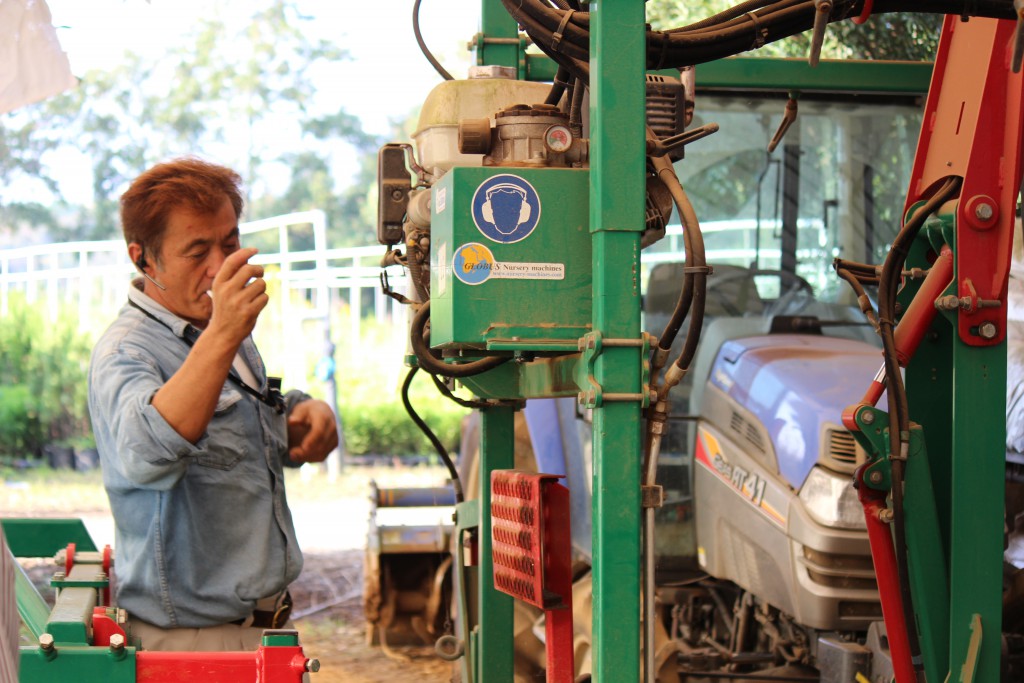 オランダから買い付けた植木の根っこを切る最新の機械も見せて頂けました。
