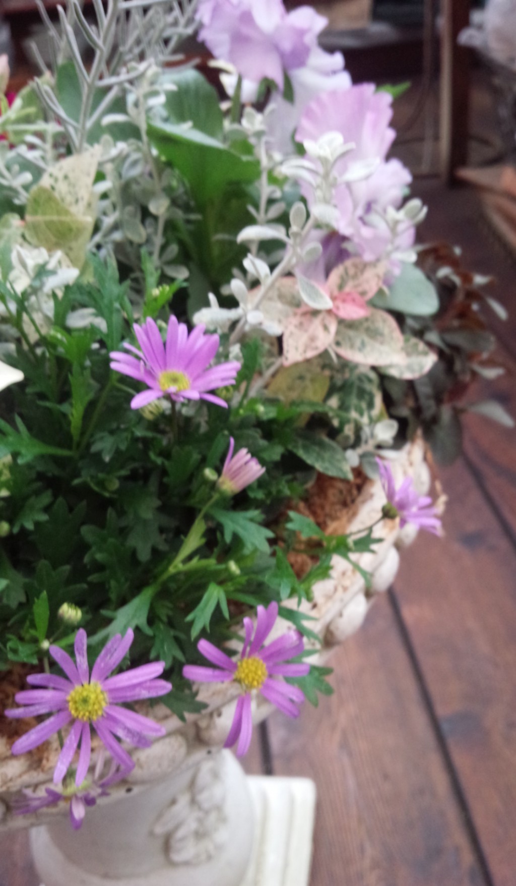 店内に1点になっていた素敵なファイバーの鉢に季節のお花を植えました♪