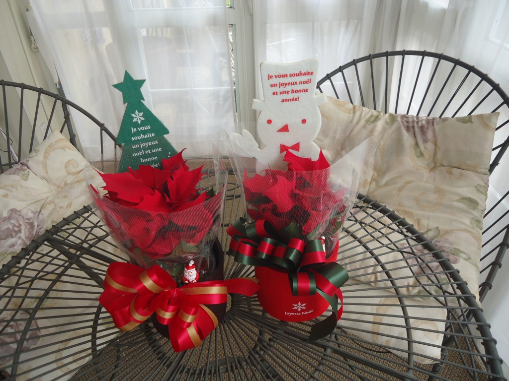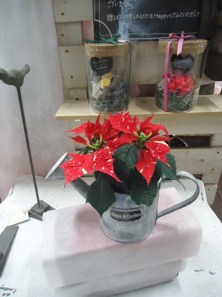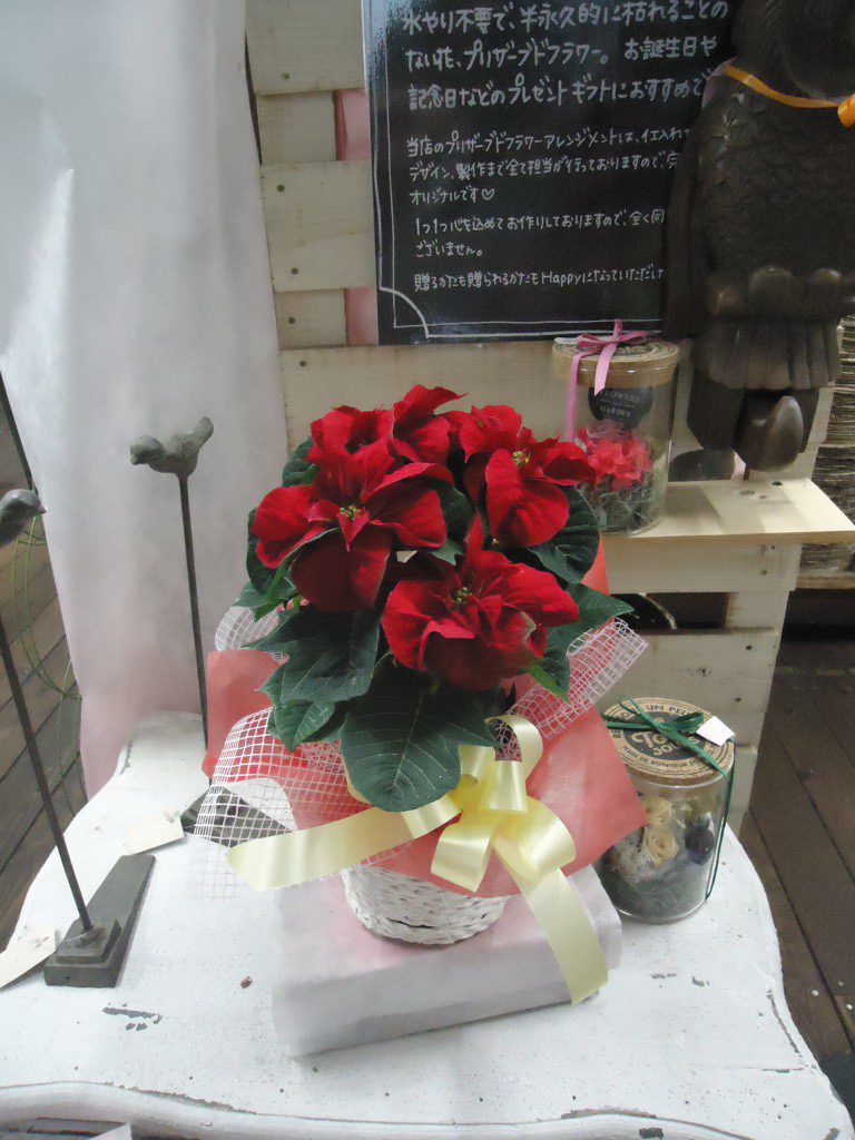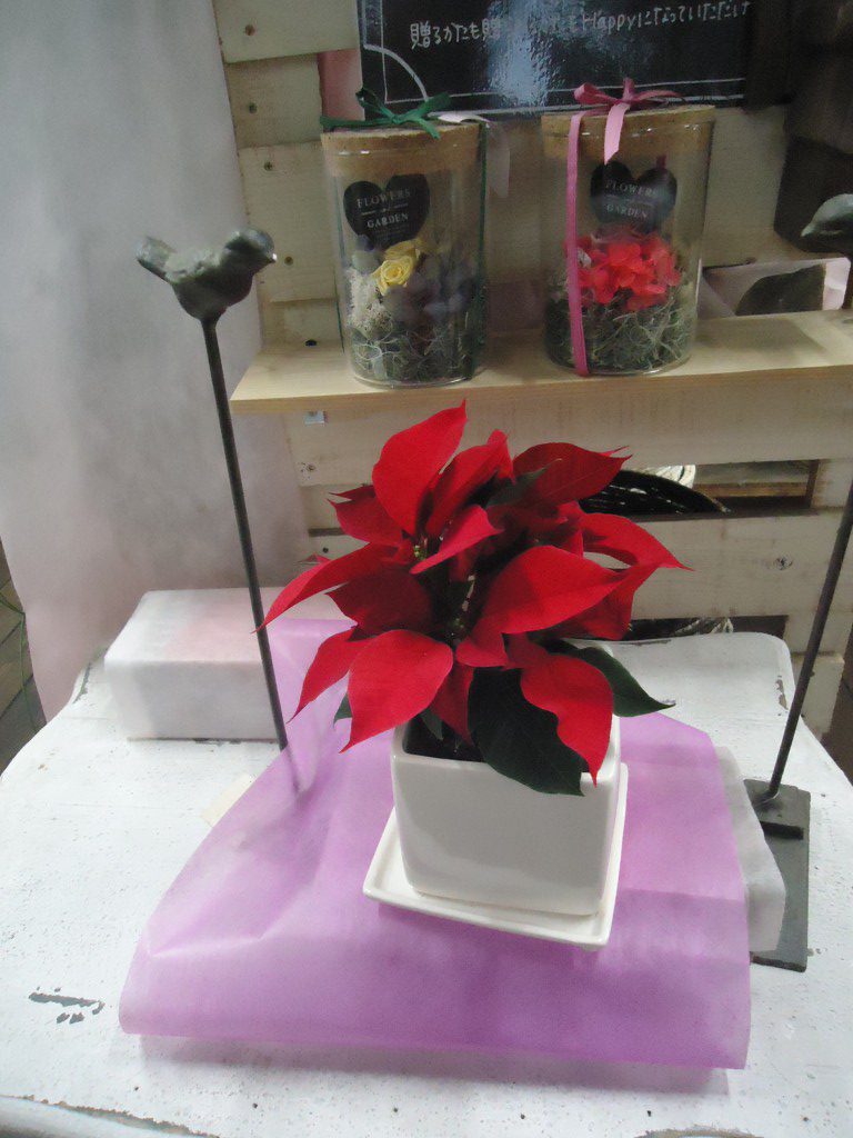 こちらは、シンプルなタイプのポインセチアを白いシンプルな鉢と合わせてます。