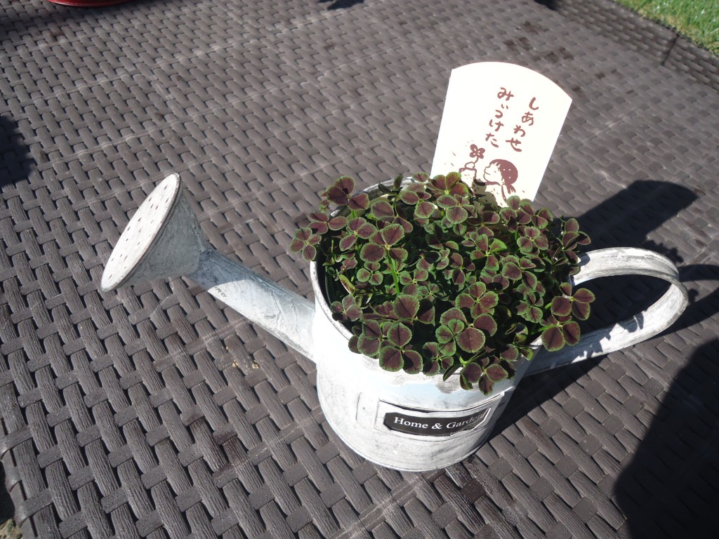 ブリキのジョウロに入れたら、とっても可愛らしくなりました。
