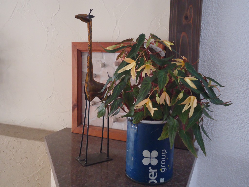 青いアンティークのブリキにはイエローのファイアークラッカーを、合わせてみました。