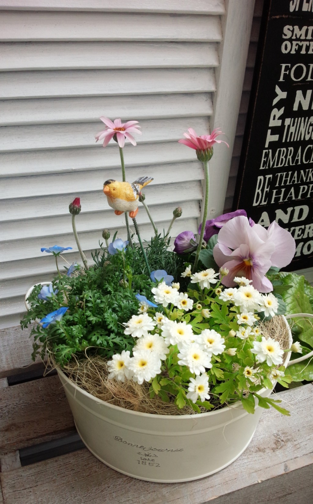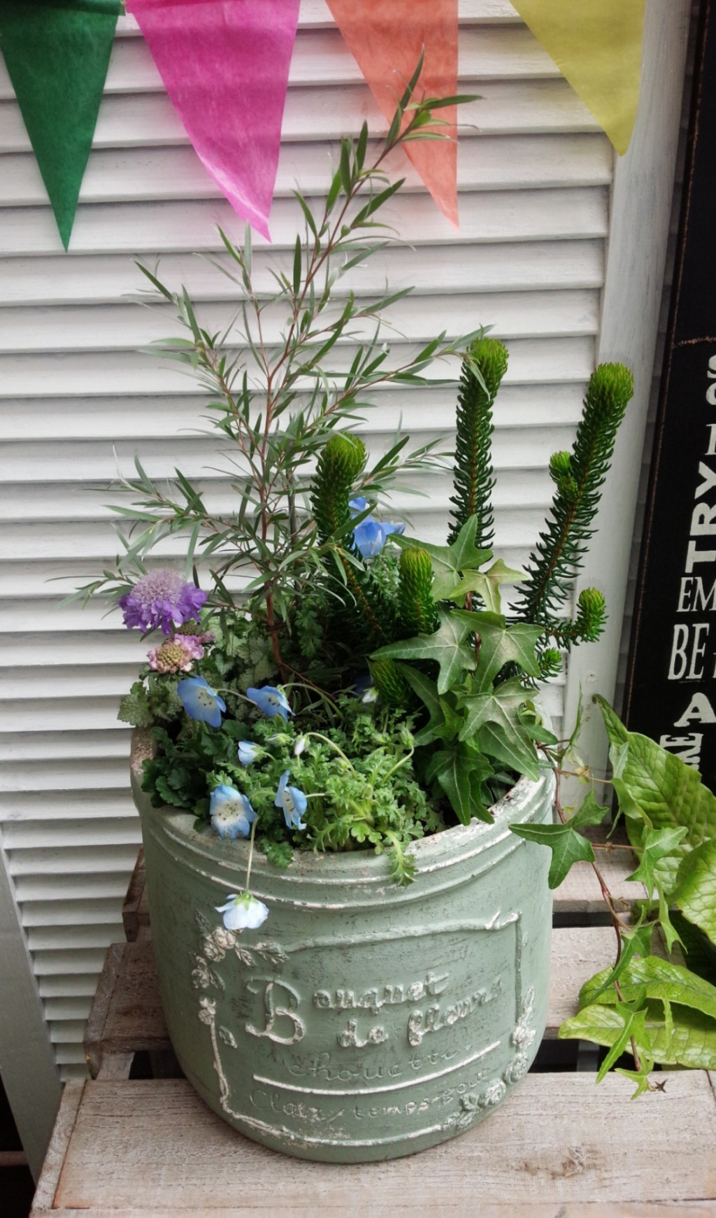 2月、火曜日の寄せ植え倶楽部 - 秦野市・平塚市・伊勢原市で観葉植物・多肉植物・ガーデニング雑貨・草花をお探しなら品揃え豊富な木村植物園におまかせ - 2017年02月15日 / 冬の寄せ植え 寄せ植え俱楽部 ギャラリー 2月の寄せ植え倶楽部 火曜日の様子です 温室の中でじっくり作っていただきました グリーンとブルーでナチュラルにお洒落に ブリキの缶にふんわりふっくらと あとひとつ、黄色いお花を探したけどコレっていうのが見つからない・・・ので、黄色い鳥さんのピックで(*・ω・)ノ フォトスポット、温室内に移動してますので、どうぞ撮影してください