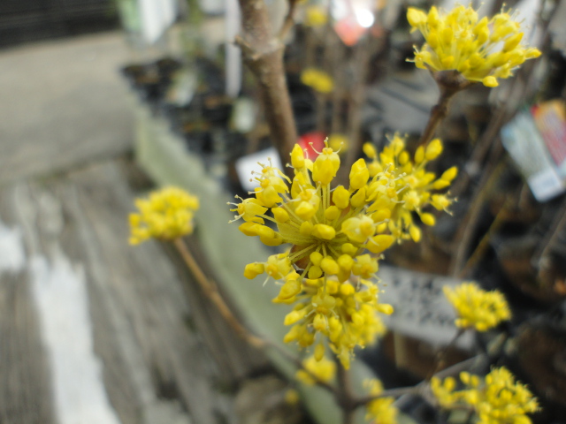黄金色の花がいかにも運気を上げそうな『サンシュユ』