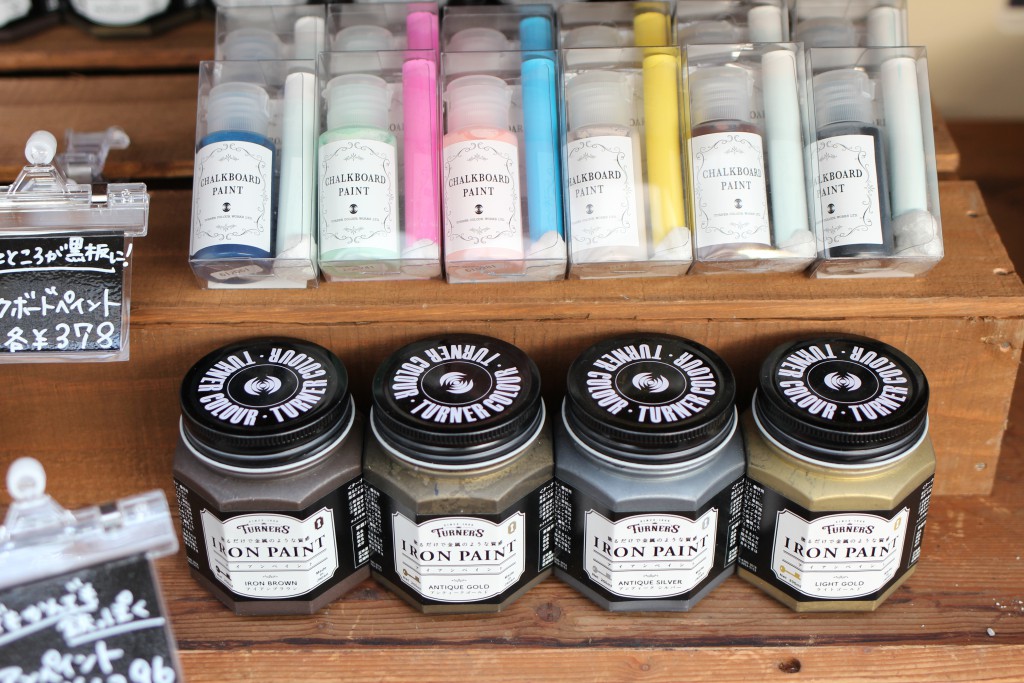 下段が、なんでも鉄っぽい仕上がりにしてくれるアイアンペイントです。全6色ですが、ターナーさんでも人気商品のため欠品が出ていて現在4色展開中です。入荷日は未定ですが残り2色も入荷予定ですよ~。