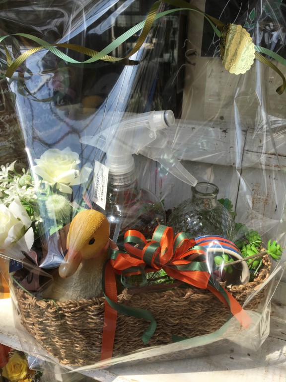 こちらは霧吹きやガラスの花瓶、造花のブーケ、アヒルの子が🐥!