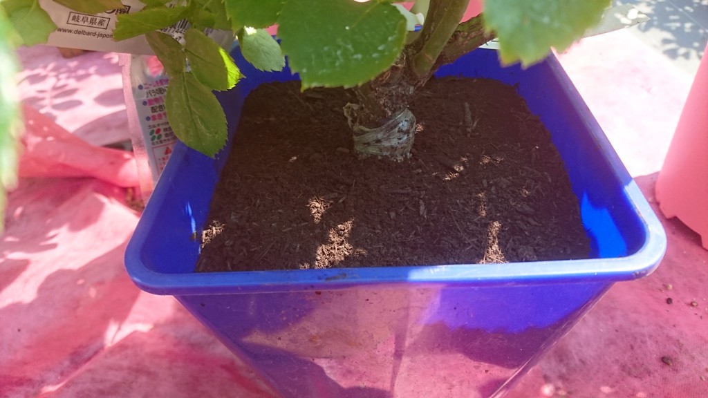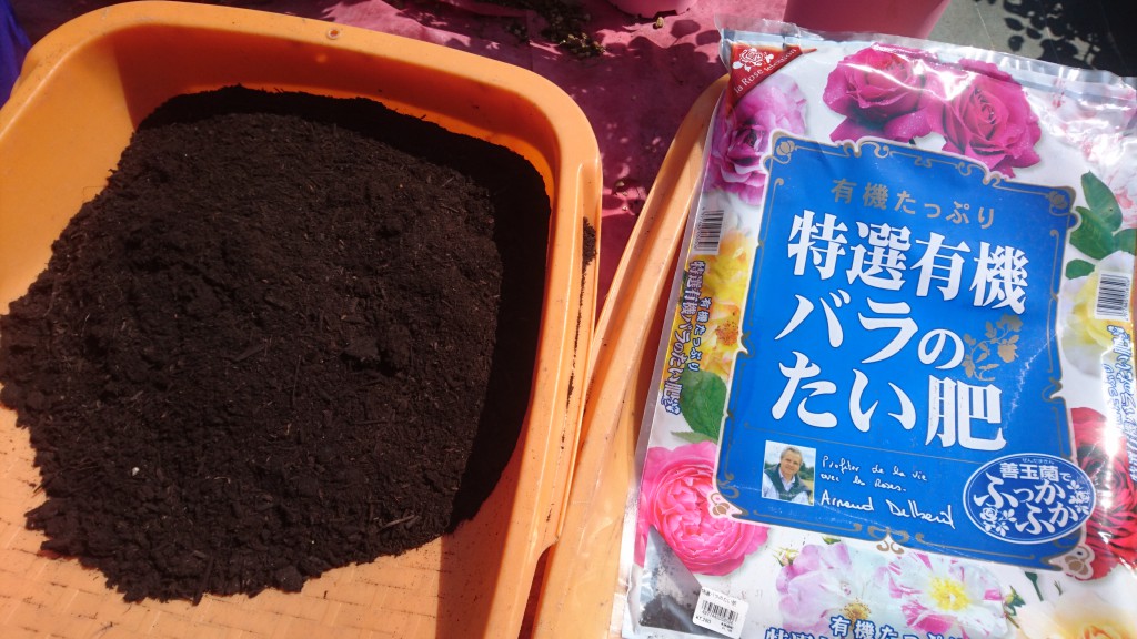 特選有機 バラのたい肥 を鉢に入れてください。