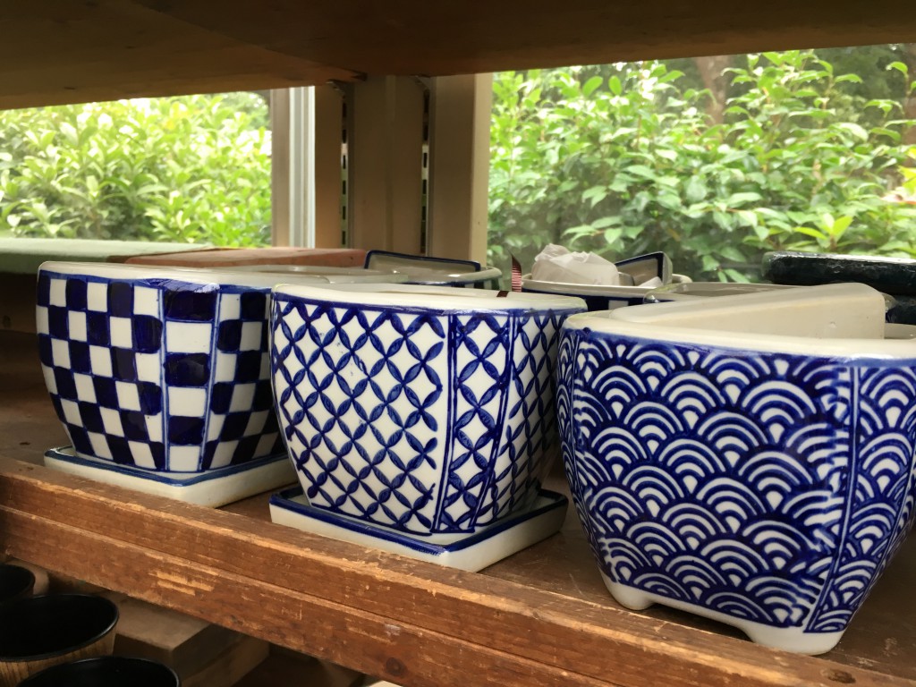 その後ろにずらりと、ぜひ一緒に合わせていたただきたい鉢をご用意しております☆
