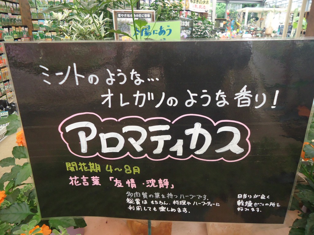 そして、ガーデン倶楽部には、爽やかな香りの「アロマティカス」が入荷しました。