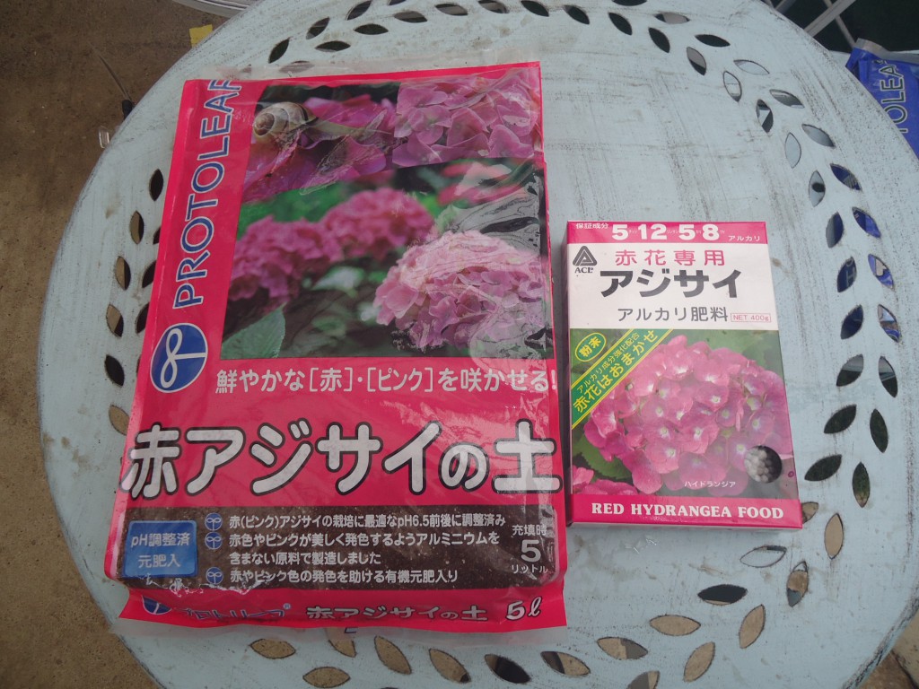 赤アジサイの土と肥料もございます。
