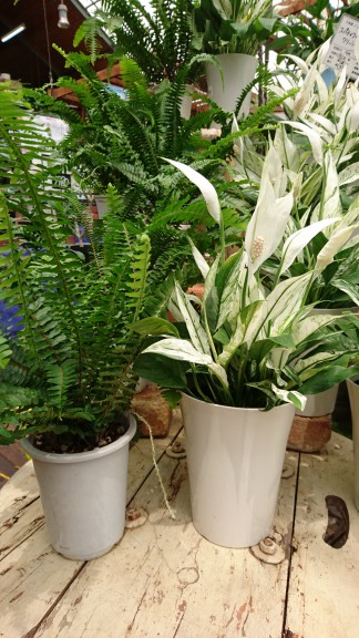 枝垂れるタイプはエレンダニカ、ポトス、スコッチシダ、レインボーーファンなど入荷しております。