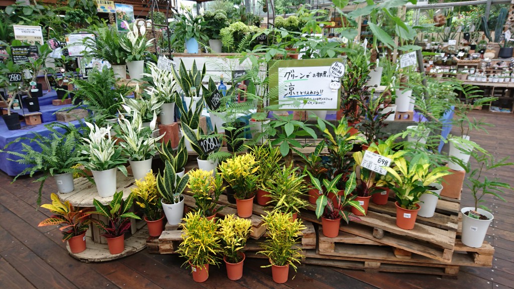 オススメは夏っぽく明るいカラーのクロトンや、涼しげな見た目の玉シダやスパティフィラム、