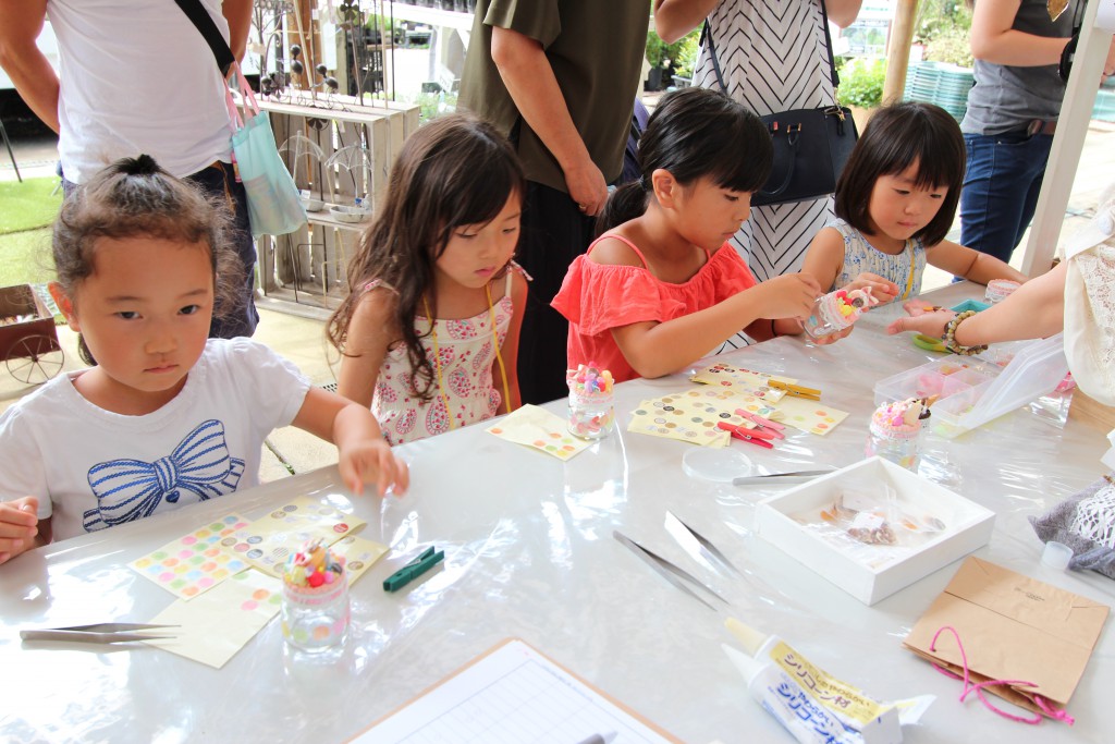 小さいビンをケーキのようにデコレーションするワークショップでした。