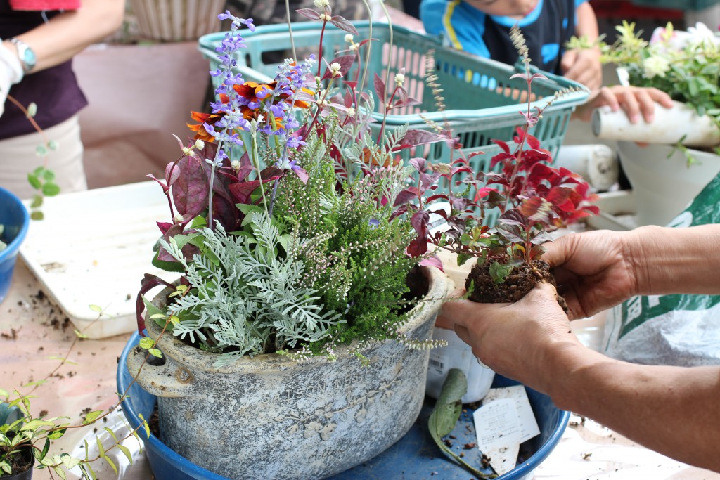 参加されている方は慣れている方も多く皆さん非常にキレイな寄せ植えを作っていらっしゃいました。