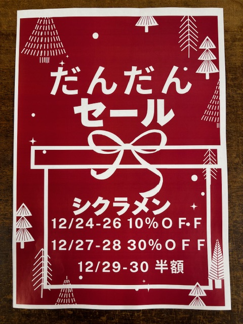 12/27〜28:30%OFF