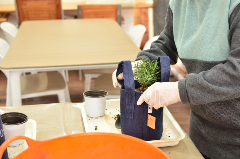 ルーツポーチという通気性の優れた鉢に植えこんでいきます☆