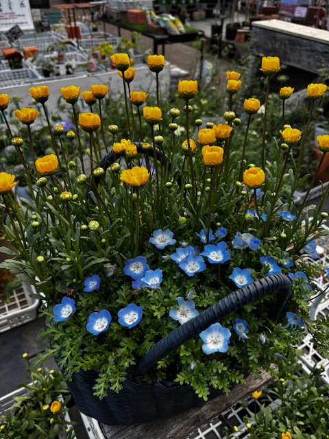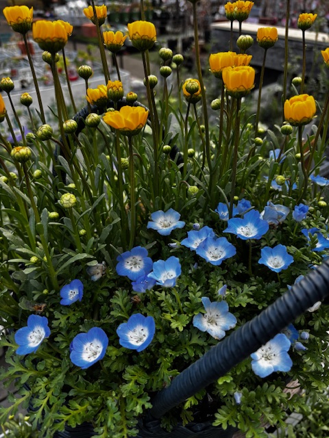 黄色の花とネモフィラの組み合わせです。