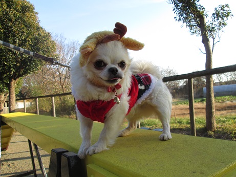 ドッグランにサンタがやって来た ② 2014年12月24日 / 未分類 12月23日(祝)の今日も、かわいいワンちゃんサンタがきてくれました。 最初に来てくれたのはラブラドールのチョコサンタ(左)とチップサンタ(右)こちらも、お友達の手作りなんですよ! とっても似合ってますよね 次に来てくれたのはチワワのうみサンタです。いつも、かわいい洋服をきていますが今日は特別にトナカイの帽子までかぶってます。 みなさん素敵なクリスマスを過ごしてくださいね☆