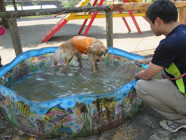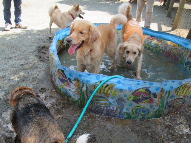 元気にプールあそび! 2015年08月16日 / 未分類 こんにちは! 今日はビニールプールを出しました♪(´▽`*) 皆でジャブジャブと楽しく遊んでいました! 次の土日のどちらか、また天気が良ければまたビニールプールを出す予定ですので、よろしければ遊びに来て下さい! お写真のワンちゃん きんたろうちゃん(ゴールデンレトリバー)/ ヴィヴィアンちゃん(ゴールデンレトリバー) ゴンちゃん(MIX) / ベティちゃん(ビーグル) 皆と遊び終わった後、ホースから出るお水と戦う ヴィヴィアンちゃん