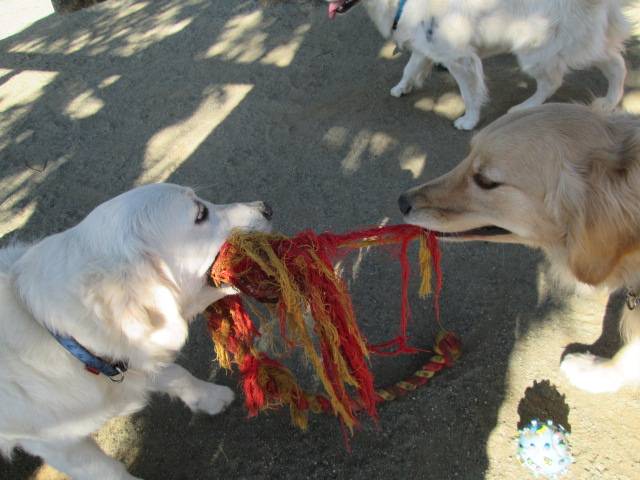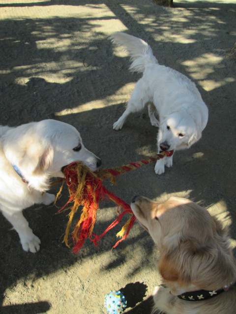・・・とそこへ「みるくちゃん」も参戦して3匹で引っ張り合いです!