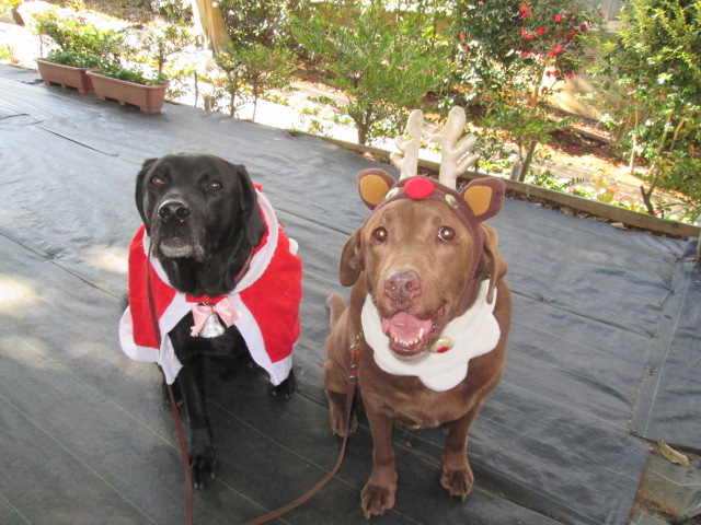 メリークリスマス - 神奈川・湘南でドッグカフェ・アジリティー施設のある緑に囲まれたドッグラン - 2013年12月25日 / ドッグラン風景 未分類 寒い日が続いてますが、今日はクリスマス☆です。 ドッグフォレストにもサンタさんとトナカイが遊びにきてくれました。 チップサンタとチョコトナカイ、とっても可愛いでしょ。 いよいよ今年、最後の週末ですね。 走り納めにぜひ遊びにきてください! お待ちしてまーす