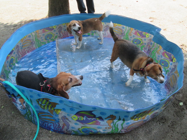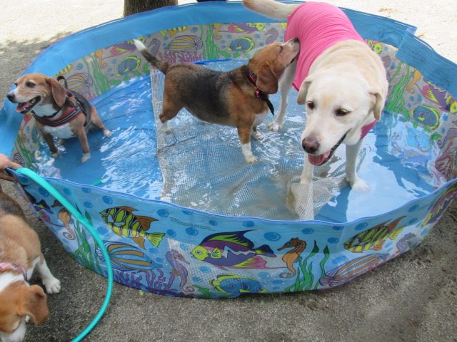 結構大き目のプールなので大型犬も一緒に遊べます!