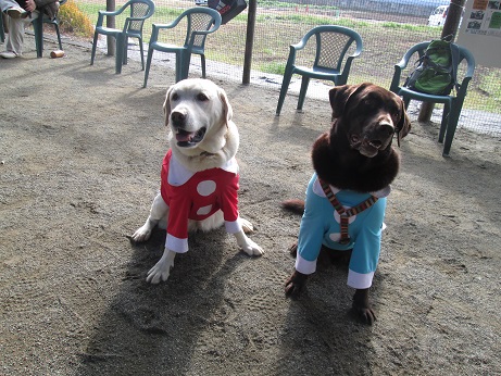 ドッグランにサンタがやってきた 2014年12月21日 / 未分類 ひとあし先にサンタさんがドッグフォレストに遊びにきてくれました。 ラブラドールのナナサンタとロビンサンタです。 色違いのおそろいが素敵ですね。この洋服は、お友達が手作りしてくれたそうです 続いてはダックスのしっぽサンタです。 ちょっと分かり図らいかもしれませんがフワフワのサンタ服です。みんなの所にもサンタさんが来るといいですね