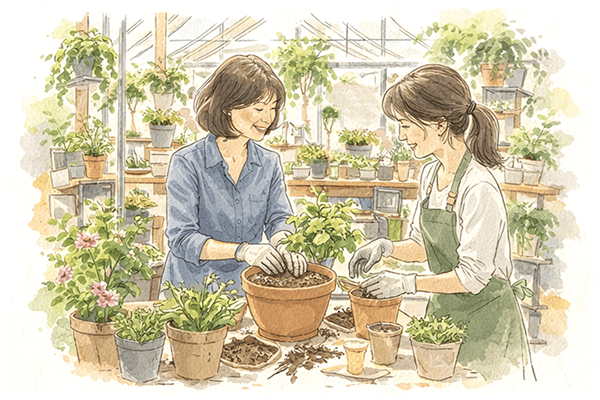 一緒に土に触れ、作品や収穫を分かち合って笑い合う。大人になってからできる「花友」との温かい時間が、あなたの人生を豊かに彩ります。