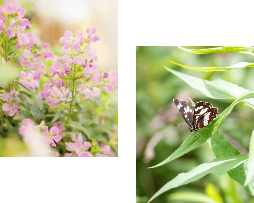 人だけでなく、虫や鳥など小さな生きものたちにもやさしい庭を、地域のみなさんと一緒につくっていきます。