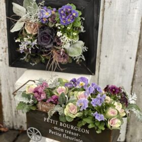 同じ日に入会された初対面のお二人でしたが、仲良くなられて今日はおそろいのバスケットに可愛く寄せ植えされました