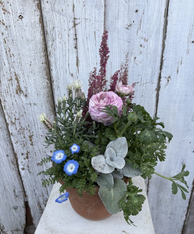 実はこちら、オーバルのカゴに植えられてますがなんと、表からみても裏から見てもまったく同じに見えます