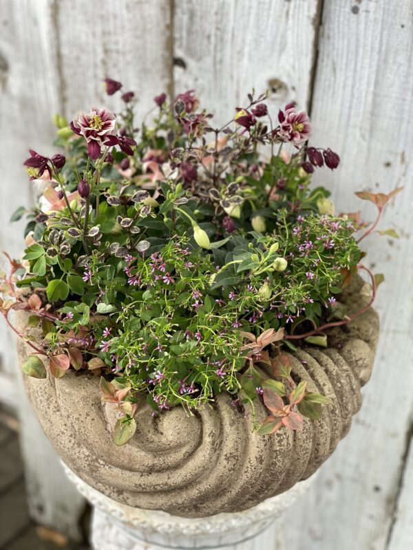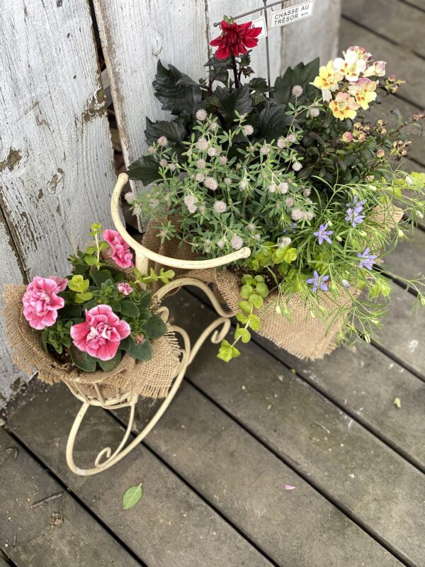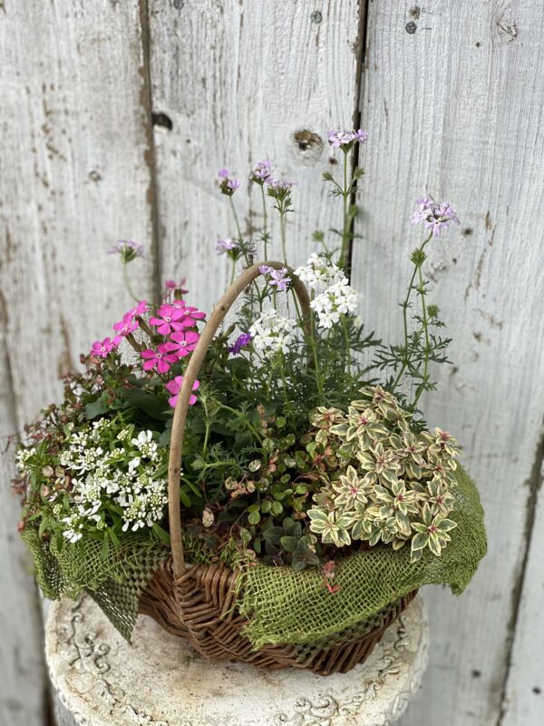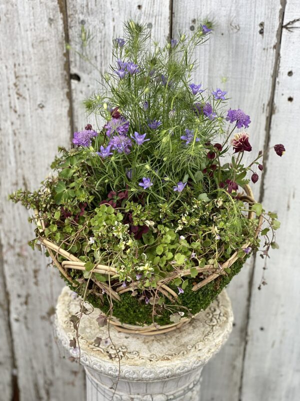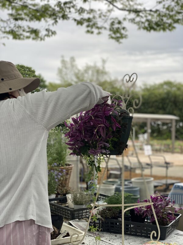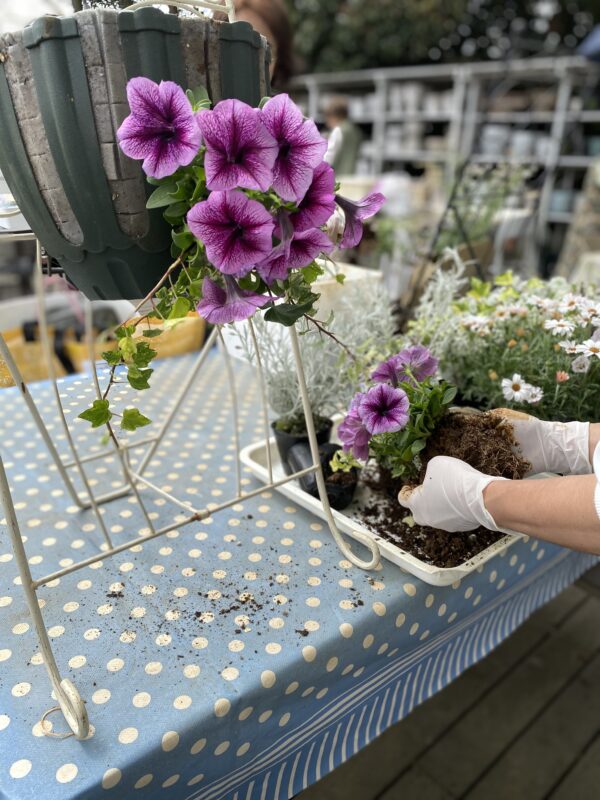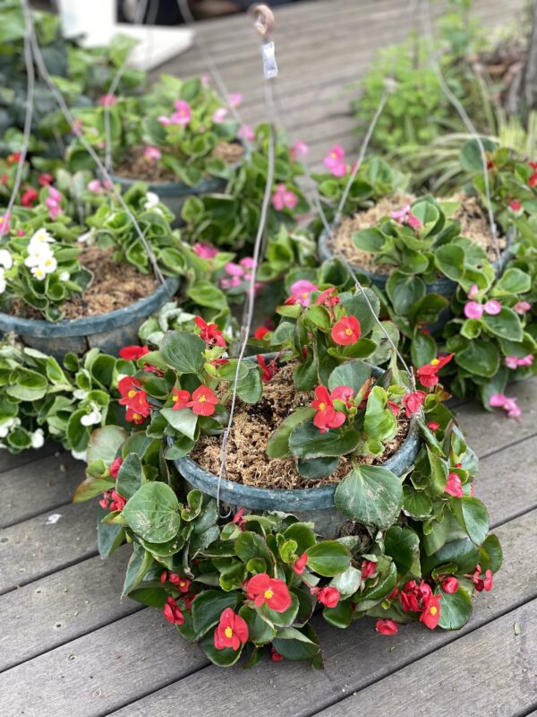 連日寄せ植え倶楽部会員さんにご協力いただき10基のベコニアのラウンドハンギングが完成しました